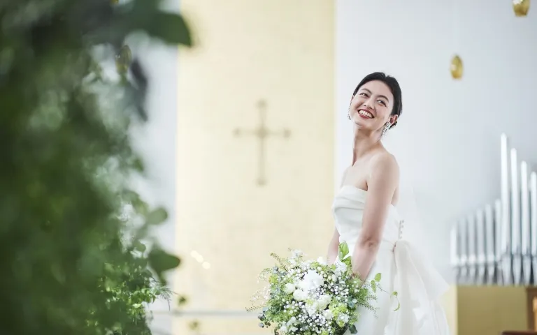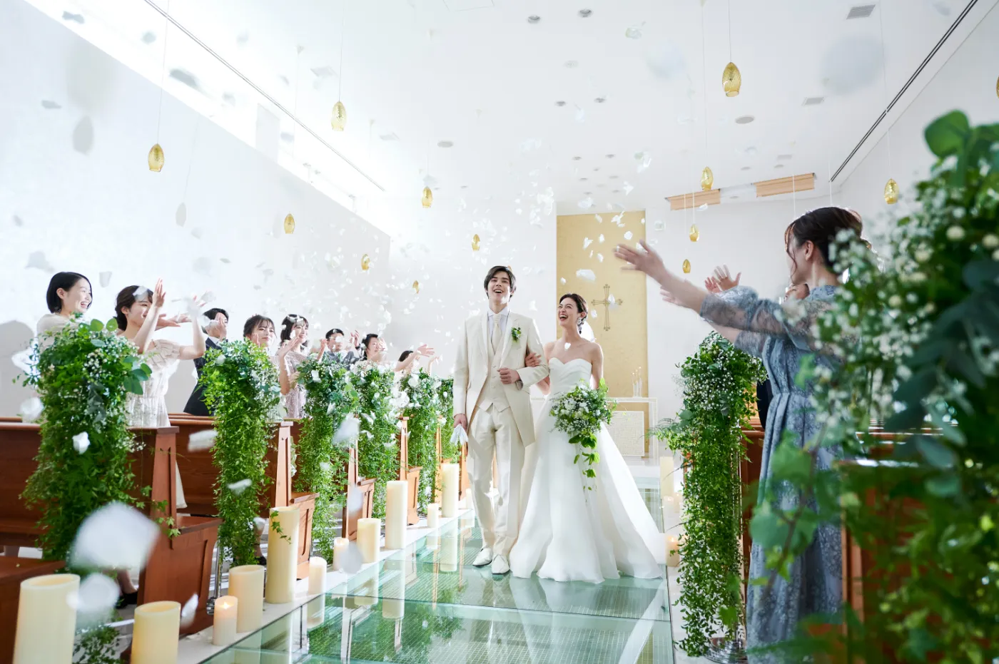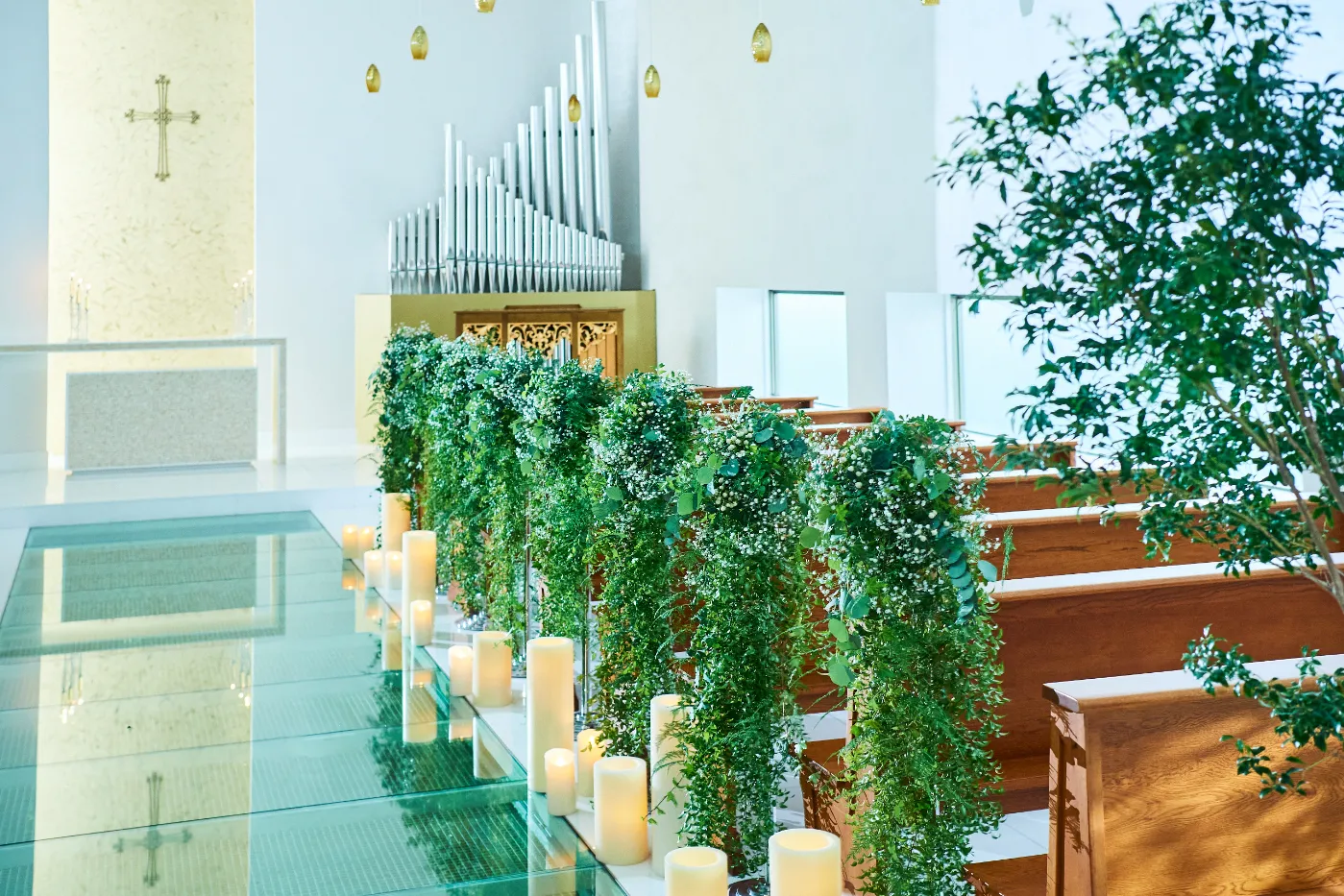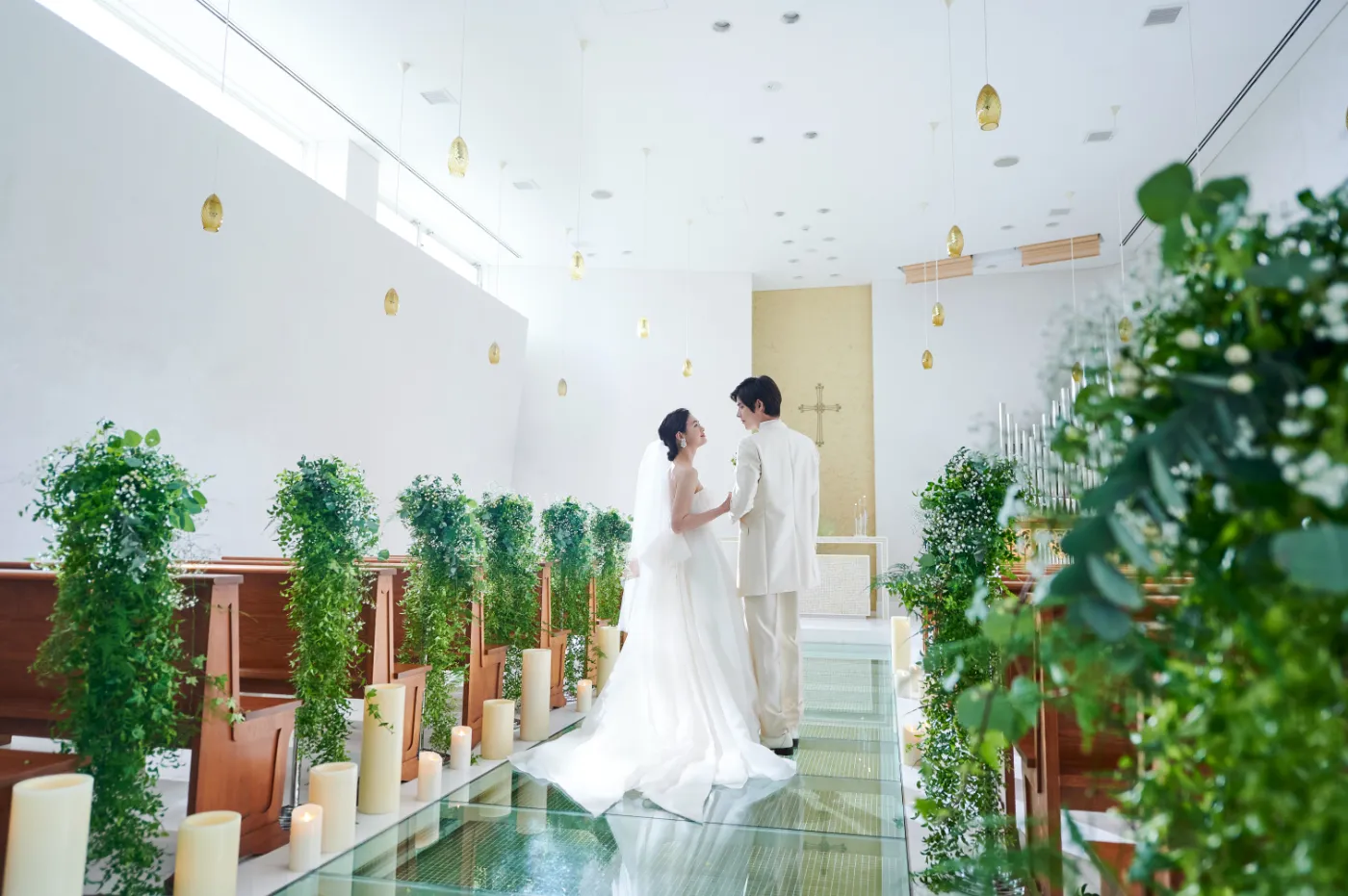 清らかな白、壮厳なゴールドと優しく降り注ぐ自然光が奏でる空間で、感動的な挙式が叶います。
