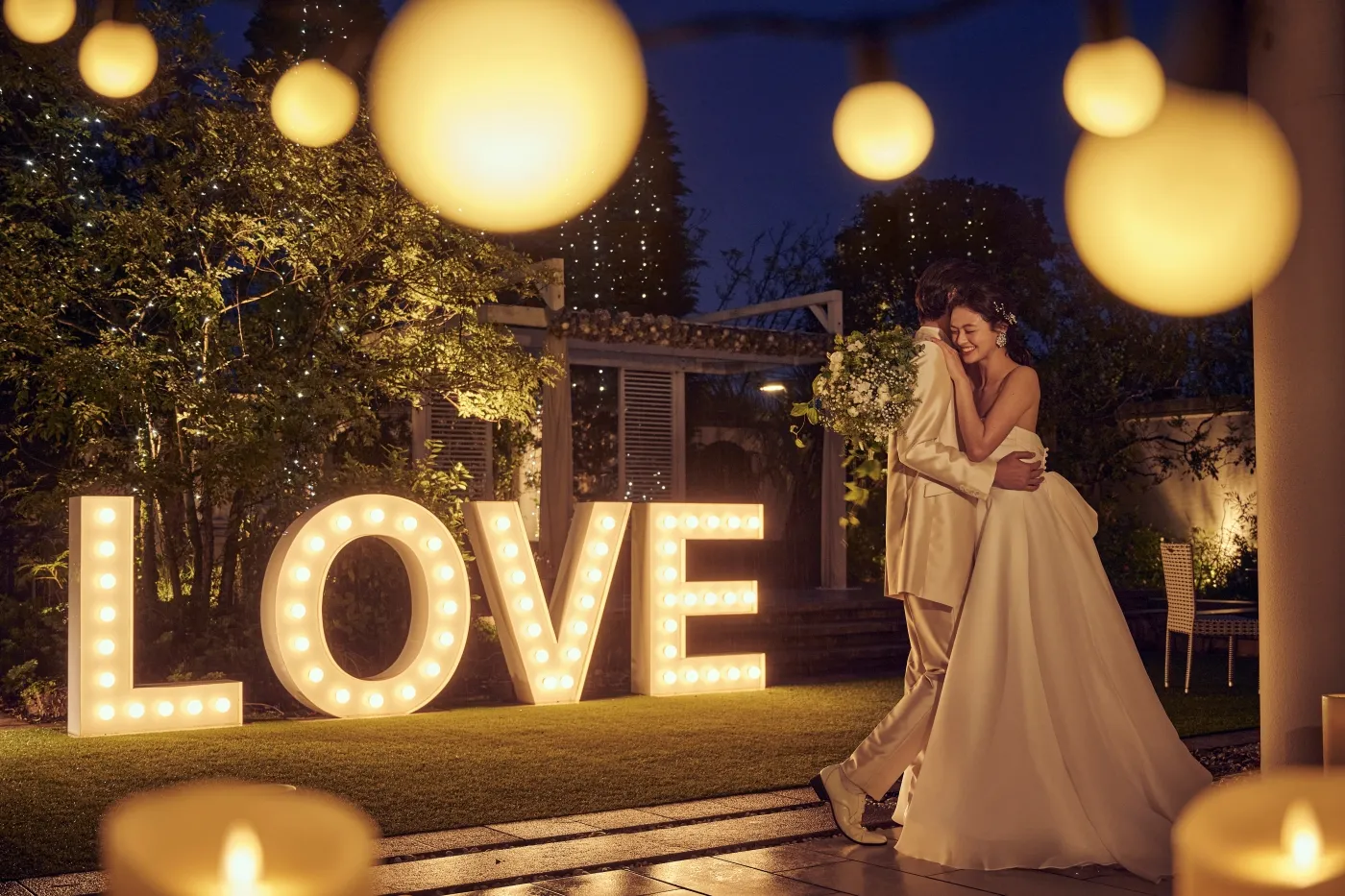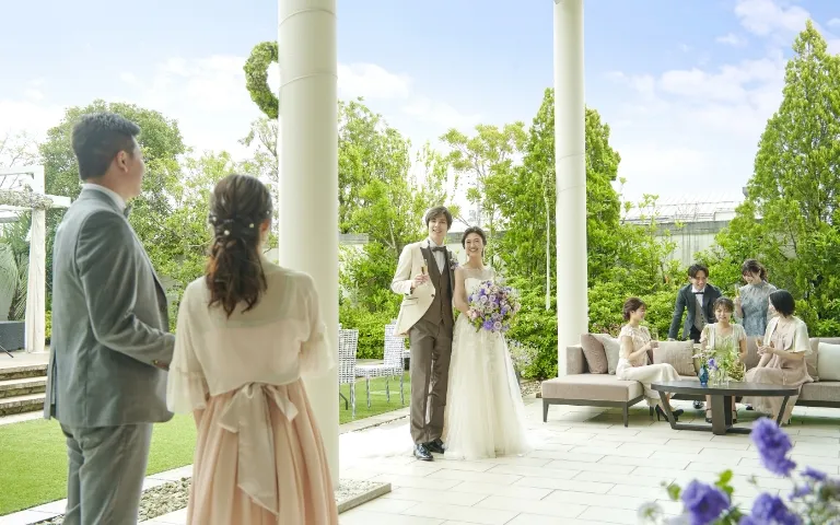 披露宴は緑豊かな庭園内に佇む八角形のパーティ会場で行われます。